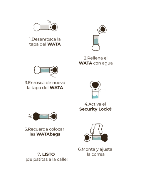 With a capacity of 286 ml , its design allows the reuse of water , this water bottle will not let you down. It also has a Security Look®️ anti-drip system so nothing is wasted. BPA Free waterer free of chemicals . Keep your dog hydrated and clean. Be Wata My Friend!